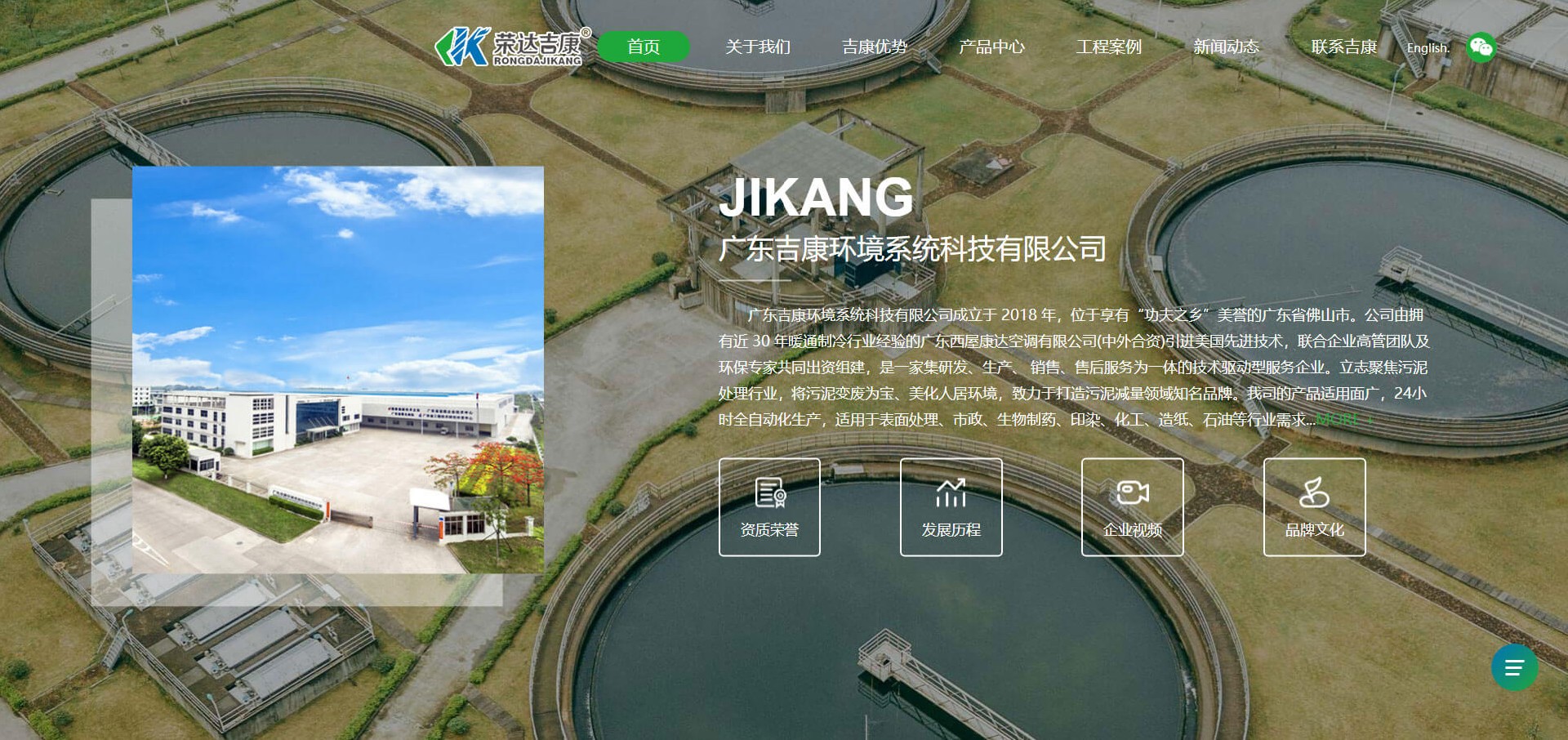 广东吉康环境系统科技有限公司成立于 2018 年,位于享有“功夫之乡”美誉的广东省佛山市。公司由拥有近30年暖通制冷行业经验的广东西屋康达空调有限公司(中外合资)引进美国先进技术,联合企业高管团队及环保专家共同出资组建,是一家集研发、生产、 销售、售后服务为一体的技术驱动型服务企业。立志聚焦污泥处理行业,将污泥变废为宝、美化人居环境,致力于打造污泥减量领域知名品牌。